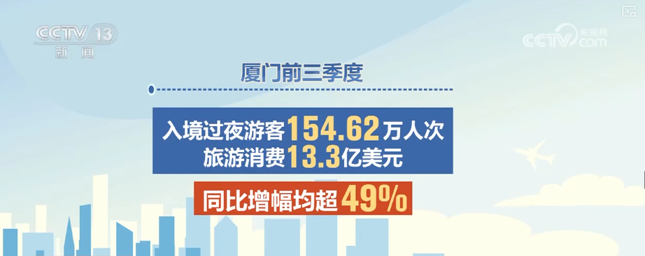 北京、广州等地文旅消费同步增长,2025年1—10月北京入境游客旅游花费折合人民币417亿元,同比增长48%。厦门前三季度入境过夜游客154.62万人次,旅游消费13.3亿美元,同比增幅均超49%。