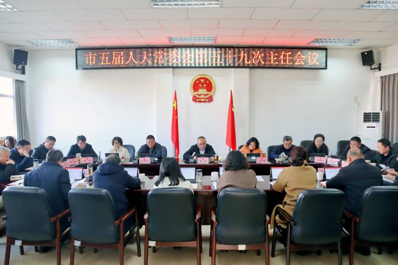 12月18日,市五届人大常委会召开第五十九次主任会议,研究市五届人大常委会第三十五次会议的有关事项,审议有关报告、方案。