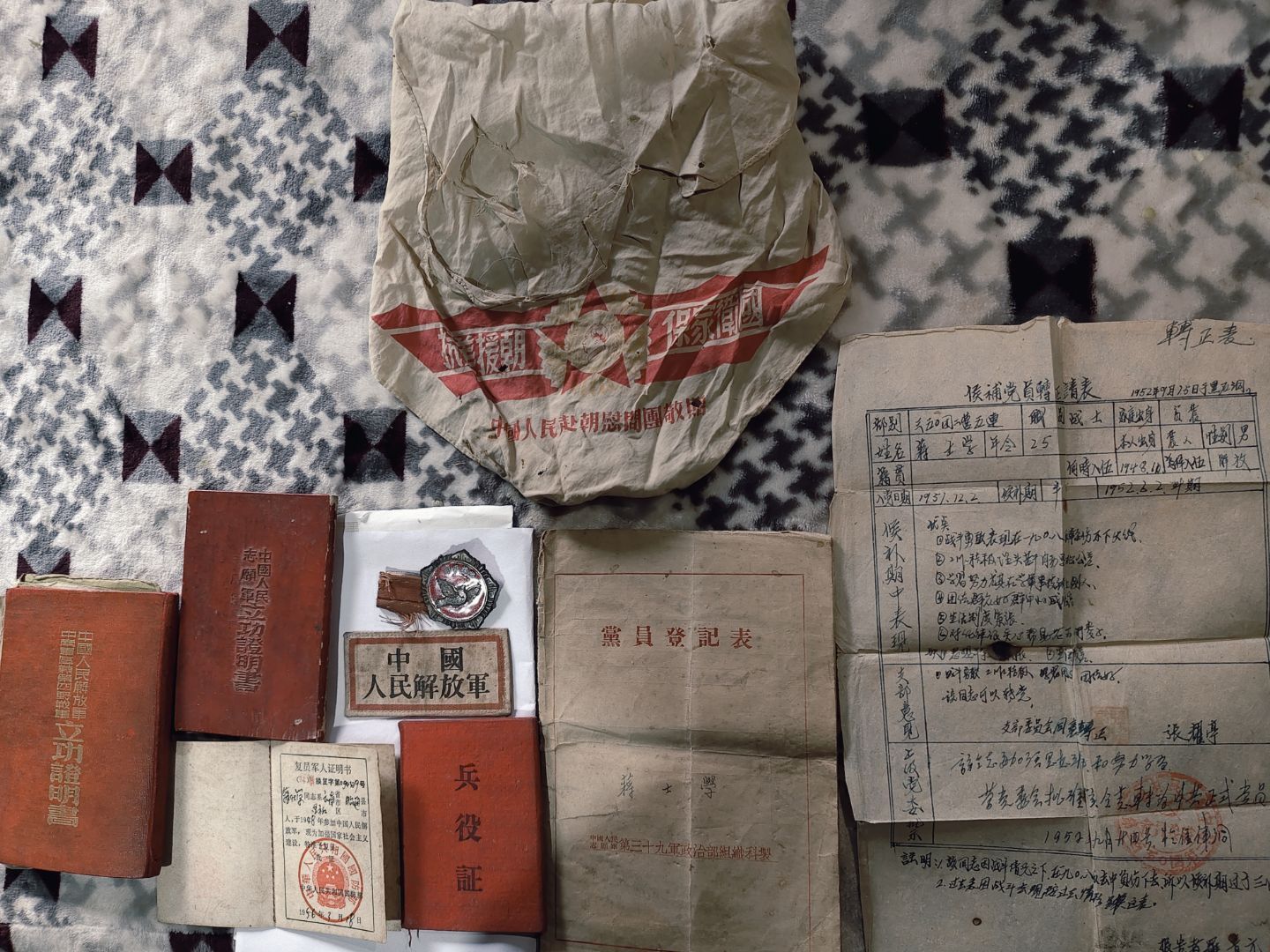 “他是1976年去世的。”蒋士学的老伴红着眼,声音哽咽。她把裹了一层又一层的、装满军功章、入党证、兵役证的袋子紧紧地握在手心,仿佛又看到了蒋士学在暮色四合时,坐在老屋前的石坎上。脚下是流淌不息的双河溪,远处是祖辈世代守望的连绵群山。夕阳的余晖将蒋士学佝偻的身影拉得很长,与这片土地完全融为一体。眼前的炊烟、稻浪、孩童的欢笑,或许正是蒋士学当年在冰天雪地里,以青春热血守望的“胜利”图景。