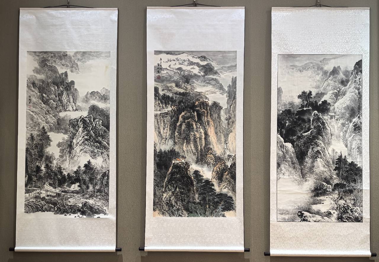 本次展览的创作者贺研是昭通昭阳人。2017年,她先后进修于清华大学美术学院美术理论研究与书画创作彩墨山水画专项及水彩专项高级研修班,现任国家一级美术师、中央美院客座教授等多项职务。其创作兼具传统底蕴与创新活力,山水作品形态浑厚苍润、气势恢宏中正,用笔有力、线条劲挺,尽显酣畅淋漓之感;烙画作品则创新性吸收西画写实技法,以烙铁代笔、温度代墨,在木与火的交织中融合中西艺术精髓,呈现出古朴典雅的独特艺术魅力。