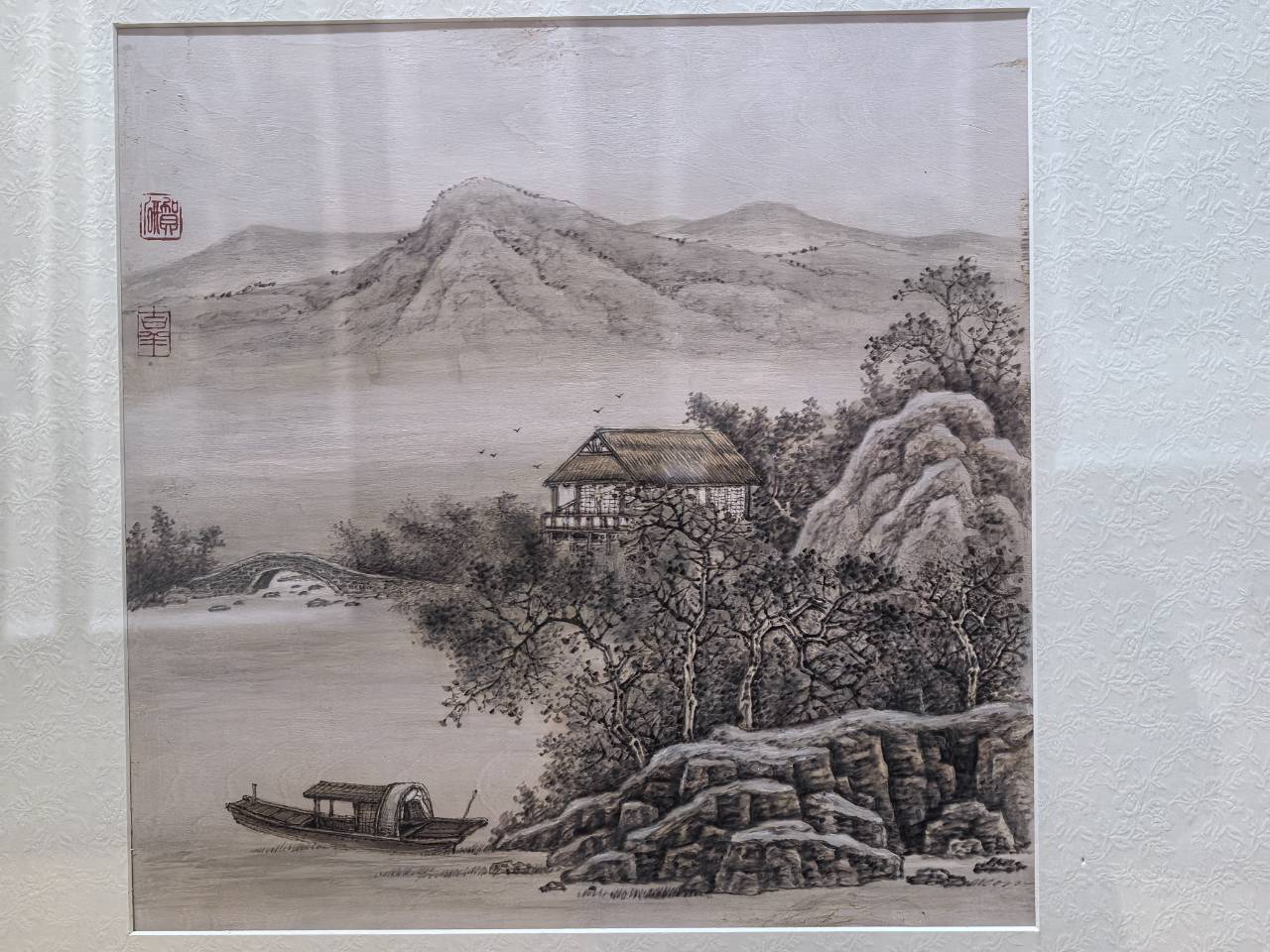 本次展览以“笔墨凝神,火痕传情”为核心脉络,巧妙将非遗烙画与水墨画两种看似迥异却精神同源的艺术形式并置呈现。烙画古称“火针刺绣”,以火为墨、以铁为笔,在木板间氤氲游走的烙铁留下焦灼印记,于精微处见功夫,在留白处蕴意境;水墨画则以“气韵生动”为至高追求,笔墨流转间尽藏天地意蕴与人生哲思。