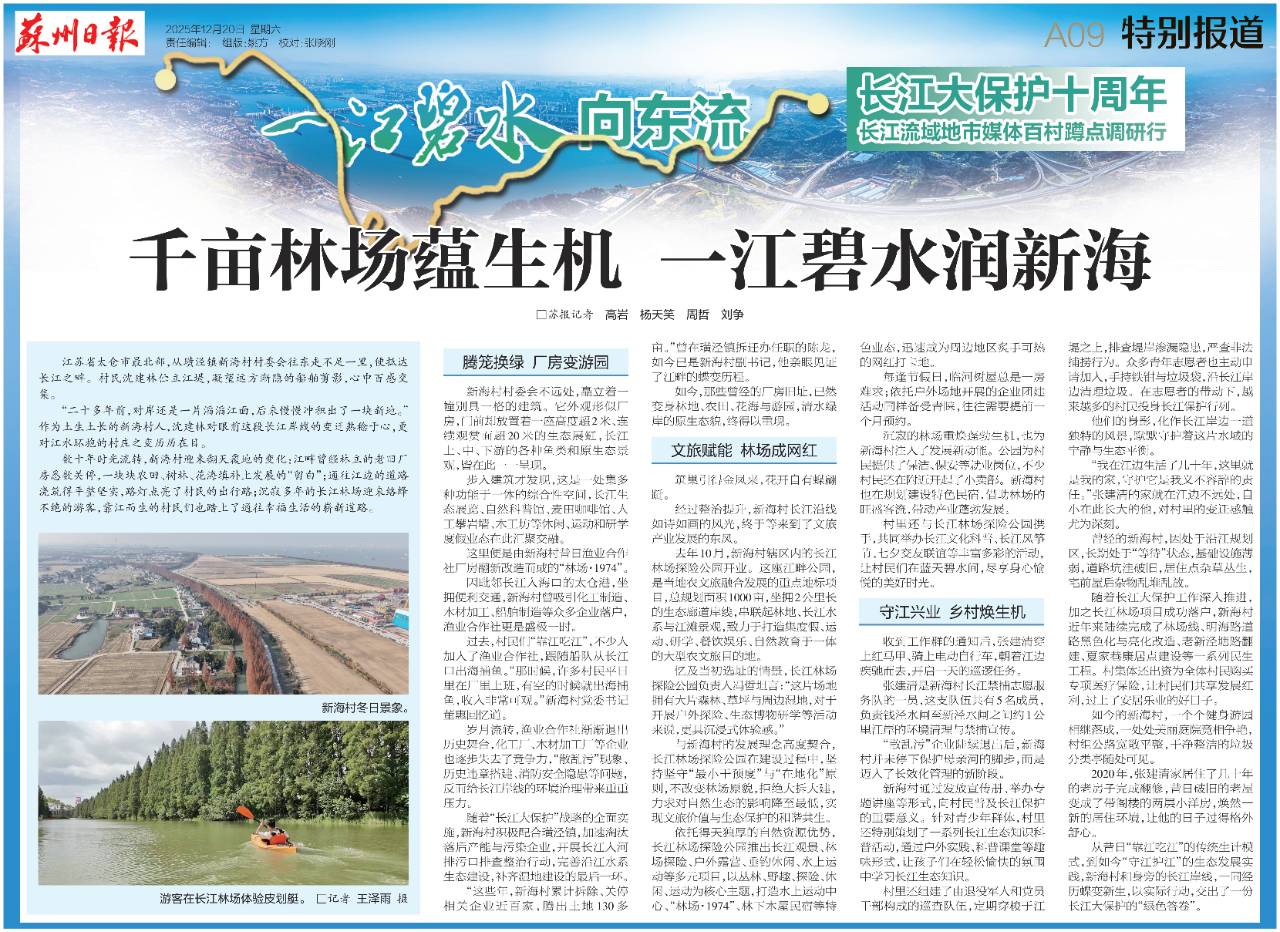 从昔日“靠江吃江”的传统生计模式,到如今“守江护江”的生态发展实践,新海村和身旁的长江岸线,一同经历蝶变新生,以实际行动,交出了一份长江大保护的“绿色答卷”。