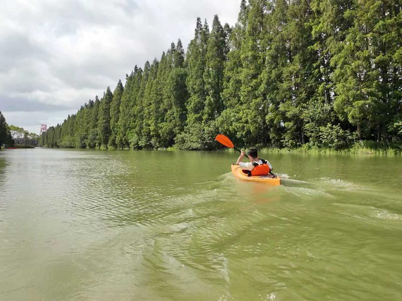 游客在长江林场体验皮划艇。
