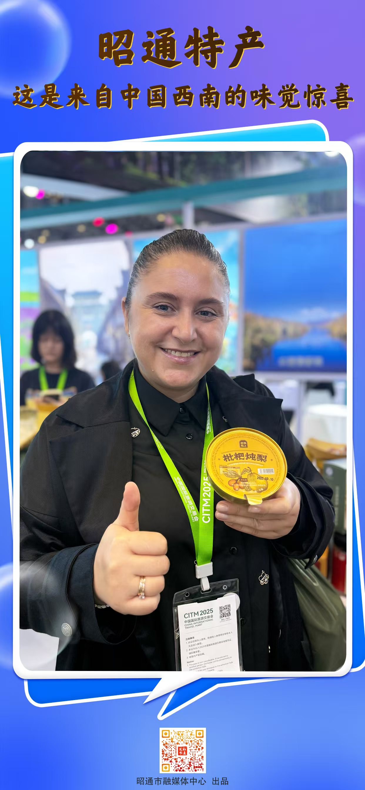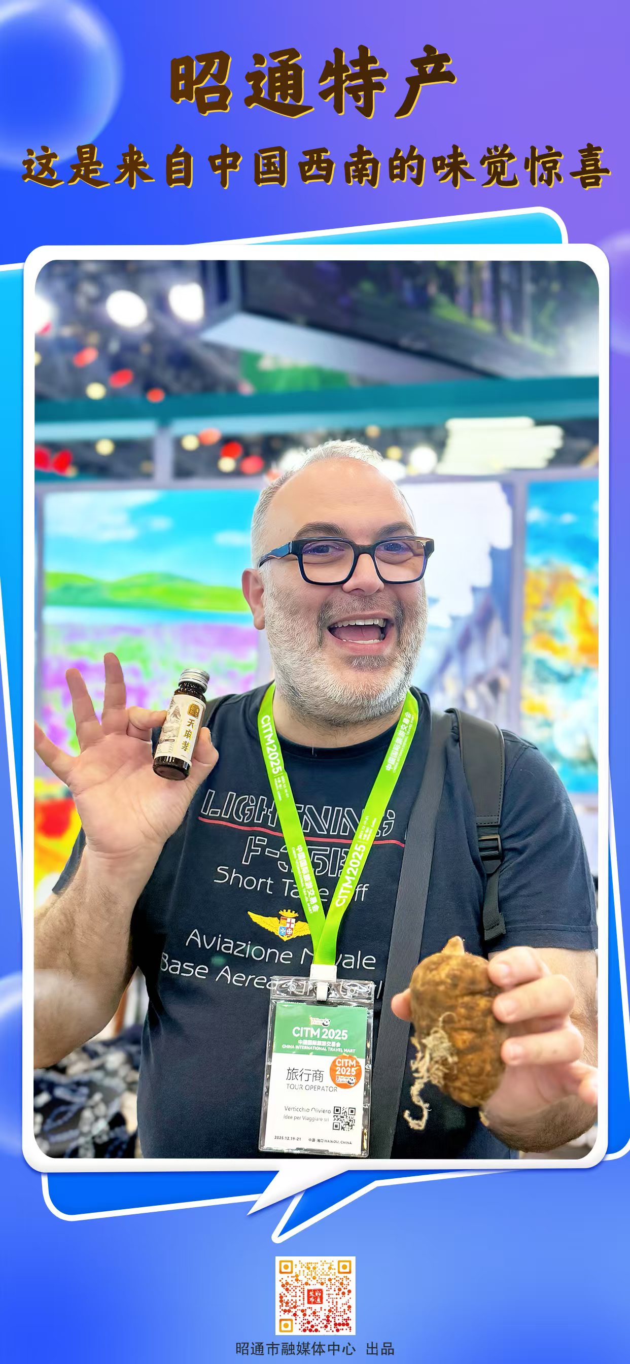 12月19日,以“你好!中国”为主题的2025中国国际旅游交易会在海口海南国际会展中心盛大启幕,这场汇聚101个国家和地区旅行商的国际文旅盛宴上,昭通市文旅局携高原特色农产品惊艳亮相,凭借独特风味与优质品质赢得外国游客热捧,成为现场亮眼焦点。