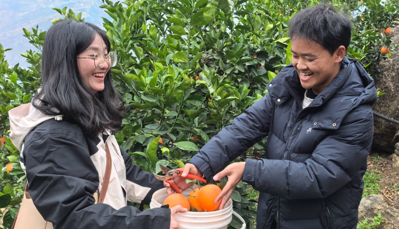 会泽县游客孟玉仙和朋友慕名而来,中午品尝长街宴特色务基髈、游览桃花岛后,走进脐橙林采摘。她捧着又红又大的脐橙激动地说:“这趟来得太值了!这里的脐橙又甜又多汁,风景也美,下次我还要带家人一起来!”