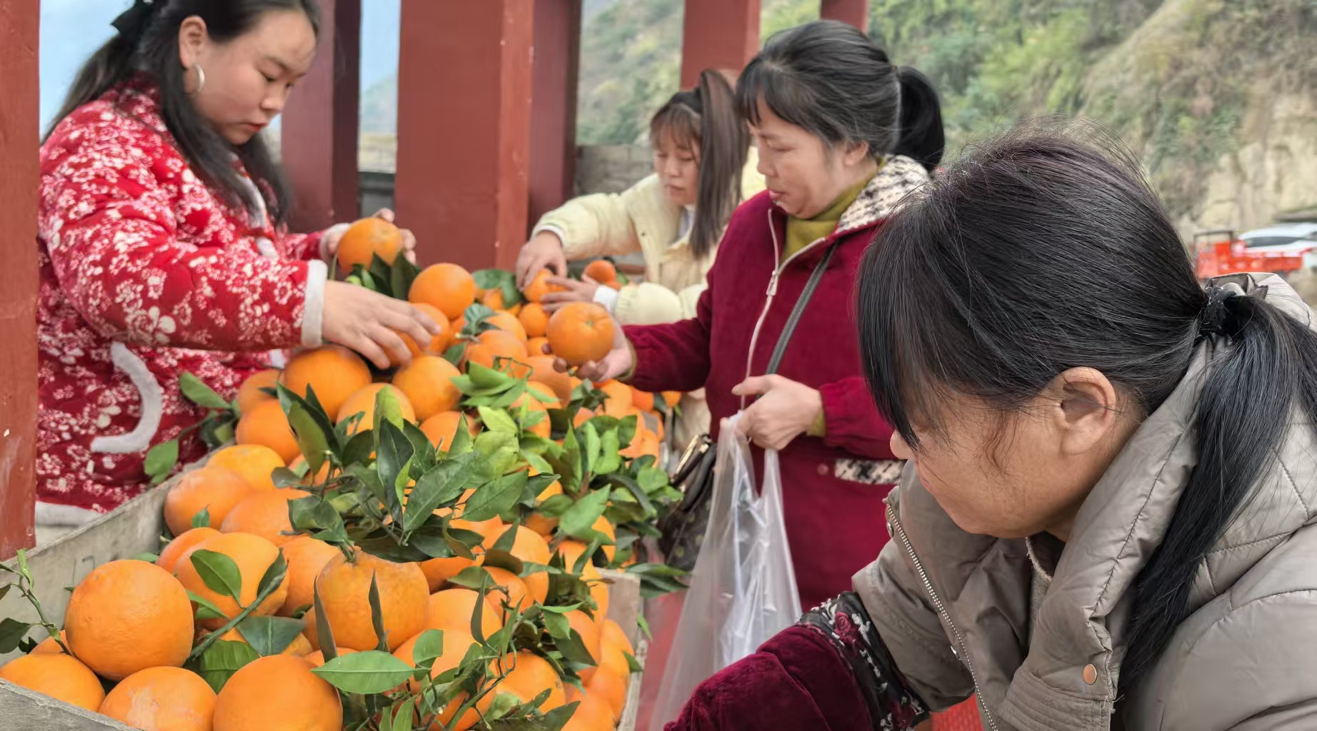 深耕特色兴产业,聚力融合促振兴。近年来,务基镇锚定“产、城、人”农文旅融合发展方向,依托青龙社区、八角村等沿江低海拔区域优势,大力发展脐橙特色产业。不仅将公路修到田埂地头,还把果园“小火车”(运输车)与引水管网延伸至果树之下,配套标准化种植与绿色防控技术,实现产量与产值双提升。目前,全镇脐橙种植面积达1.2万亩,培育专业合作社60余家,年产量2700万公斤,产品远销四川、重庆、浙江等地,年产值超2亿元,其中网络销售带动销量增长30%以上。务基镇创新构建“党支部+集体经济+公司+基地+农户”利益联结机制,带动群众就近务工超1万人次,累计增收100余万元。如今,脐橙已成为撬动果农增收、赋能乡村旅游的支柱产业。