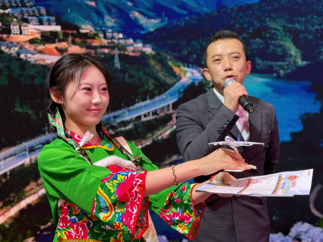 “旅交会为昭通搭建了展示特色、链接市场的绝佳平台。”除了好物云集,视听盛宴也轮番上演。《回家了》的温情、《贵客喝酒》的豪爽、《苹果红了》的喜悦、《醉昭通》的悠然,一首首特色歌曲唱响展区。展位灯箱上,大山包的云海翻涌、黄连河的飞瀑流泉、豆沙关的雄奇险峻一一铺展,歌声与美景交织,勾勒出一幅独具特色的昭通画卷,让观众沉浸式体验了昭通“大水”“大山”“大峡谷”的独特魅力。