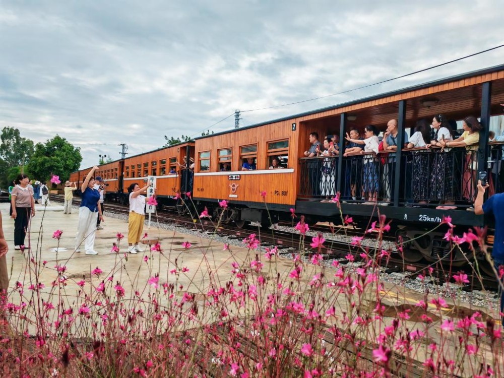 游客在建水县乘坐米轨小火车游玩。新华社记者浦超 摄