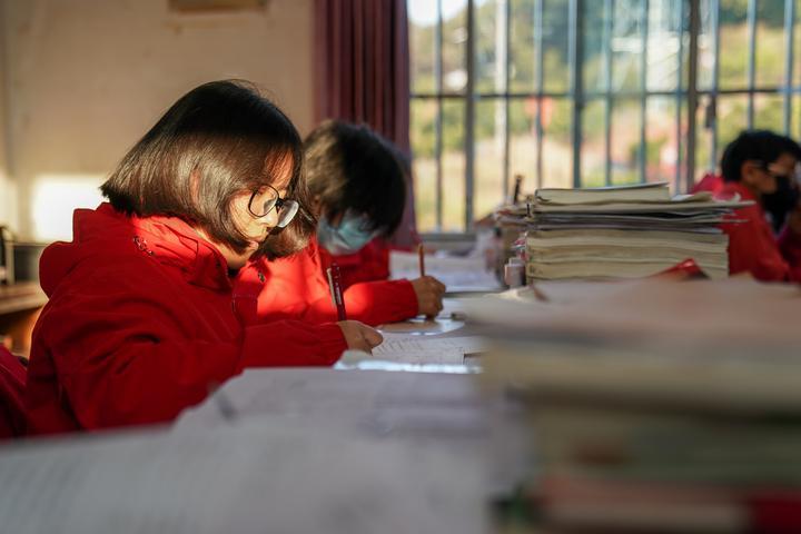 华坪女高高三61班学生胡琳说:“周老师为了讲明白一个图,用了整整半小时。我一下子就懂了。”张桂梅“能学懂的先学好,太难的慢慢来”的理念,也被周云丽一丝不苟地继承下来。她逐个给学生分析错题,嘴上或许严厉,心里全是盼她们快点学会的焦灼。