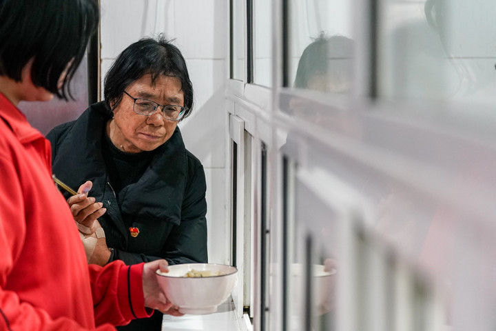 七点早自习结束,孩子们如红色溪流般冲出教学楼,快步跑向食堂。张桂梅的小喇叭声不时响起:“快一点,再快一点!”食堂里没有喧哗,十分钟内,许多人已收拾碗筷返回教室。