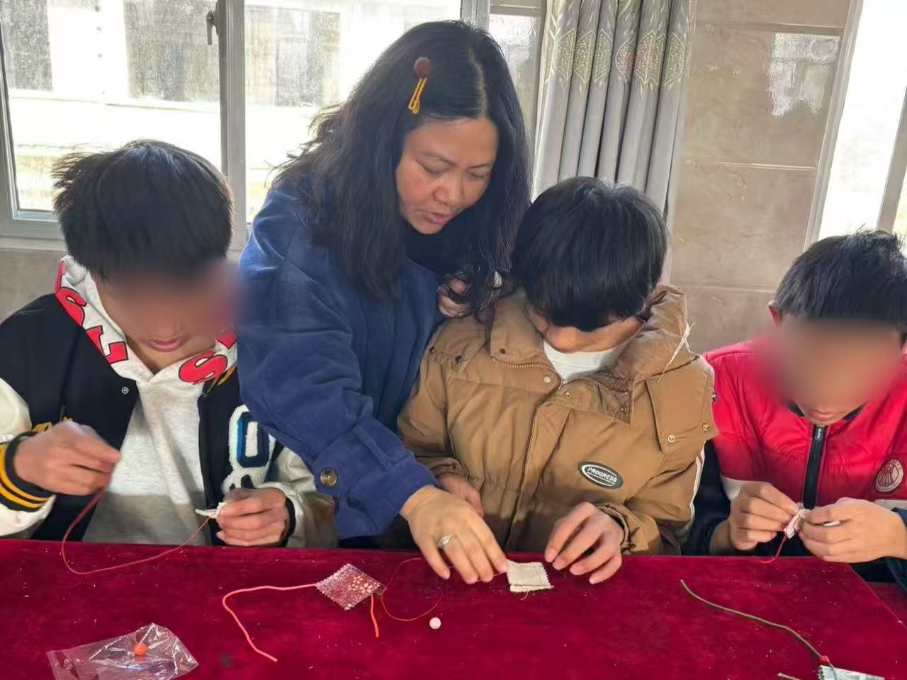 12月21日,鲁甸县儿童福利院多功能活动室内欢声流淌,暖意融融,“巧手传非遗·冬至感恩心”文化节在这里举行。70余名儿童在非遗老师与工作人员的陪伴下,围坐长桌,小手执起红纸与针线,在冬至暖阳中,开启了一场与非遗相遇的温情之旅。