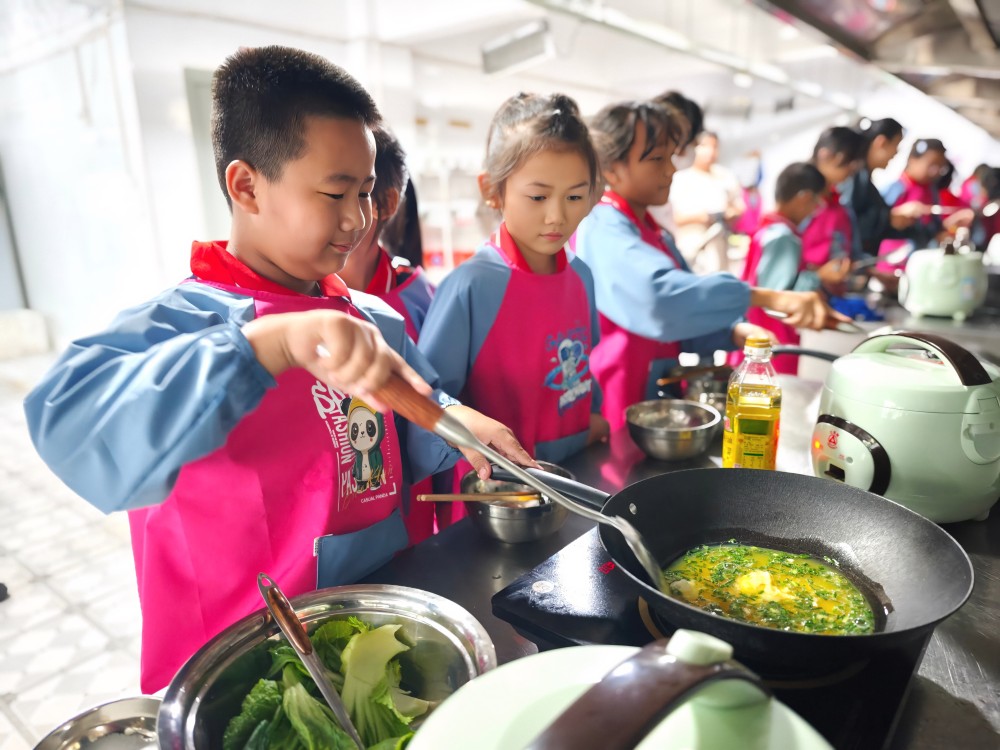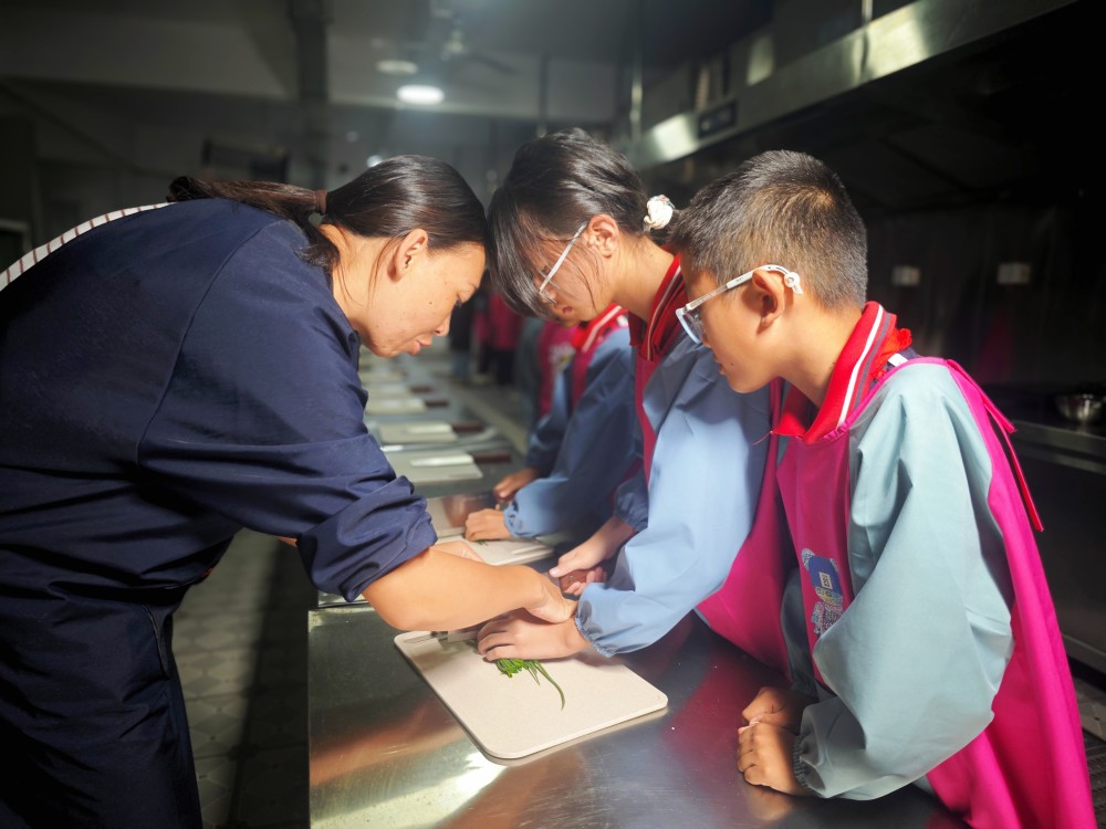 洗菜、切菜、下锅翻炒……在学校的“雪堂炊趣”学厨基地,冰冷的灶台成了最生动的讲台。这里取名自苏东坡筑雪堂、乐烹煮的故事,意在让孩子在创造中感受生活本味。