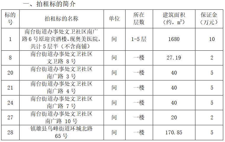 受镇雄县南台街道文卫社区居民委员会委托,我公司将对以下标的进行公开拍租。相关事项如下: