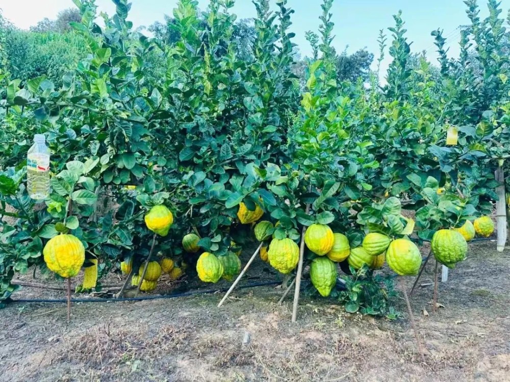 田间地头,金黄的香橼压弯枝头,在阳光下泛着诱人光泽,格外惹眼;不远处的香蕉林里,宽大叶片随风轻摇,一串串饱满的香蕉隐匿其间,尽显生机;连片菜地里,翠绿蔬菜长势旺盛,勾勒出充满希望的“增收绿”;紫姜种植区里,村民们弯腰忙碌,小心翼翼地挖起带着泥土的紫姜,每一个动作都饱含着对美好生活的向往。