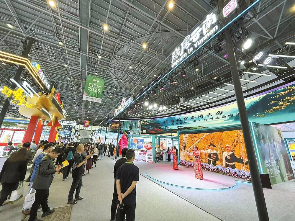 经省文化和旅游厅组织,昆明、曲靖、玉溪、昭通、丽江、普洱、临沧、楚雄、西双版纳、迪庆、文山、红河共12个州(市)文旅部门以及省内相关行业协会、文旅企业等61家单位参展。云南展区面积达600平方米,以“有一种叫云南的生活旅居云南”为核心主题,包含云南文化旅游品牌形象展区、州(市)文化旅游目的地形象展区、旅居云南展区、文旅融合展区、文化旅游企业展区、非遗展区、休息洽谈区共7个功能分区,采用全特装搭建,布局紧扣云南地域特色,全方位凸显云南旅游资源禀赋。此外,旅交会期间,主舞台还定期开展推介和表演,生动展现云南文旅高质量发展的丰硕成果与崭新亮点。