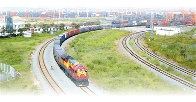满载集装箱的班列驶离广西钦州铁路集装箱中心站。新华社记者张爱林摄