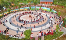 各族群众在威信县双河乡垕房石榴籽广场开展活动。