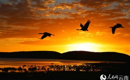 云南大山包:鹤舞霞光里
